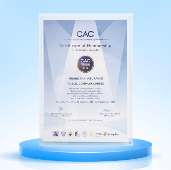 ได้รับประกาศนียบัตรการเป็นองค์กรที่ผ่านการประเมินการประเมินและการรับรองการเป็นสมาชิกต่อเนื่องเป็นครั้งที่ 4 (ต่ออายุครั้งที่ 3/2567) จากคณะกรรมการแนวร่วมปฏิบัติของภาคเอกชนไทยในการต่อต้านการทุจริต โครงการแนวร่วมปฏิบัติของภาคเอกชนไทย ในการต่อต้านการทุจริต (Thai Private Sector Collective Action Against Corruption : CAC) สมาคมส่งเสริมสถาบันกรรมการบริษัทไทย (IOD)
