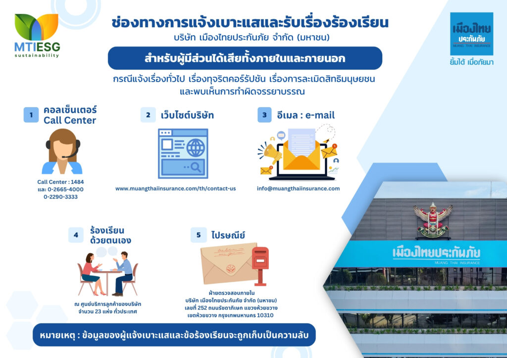 บริษัทมีช่องทางรับข้อร้องเรียนหลายรูปแบบเพื่อสร้างความมั่นใจให้ผู้มีส่วนได้ส่วนเสีย เช่น